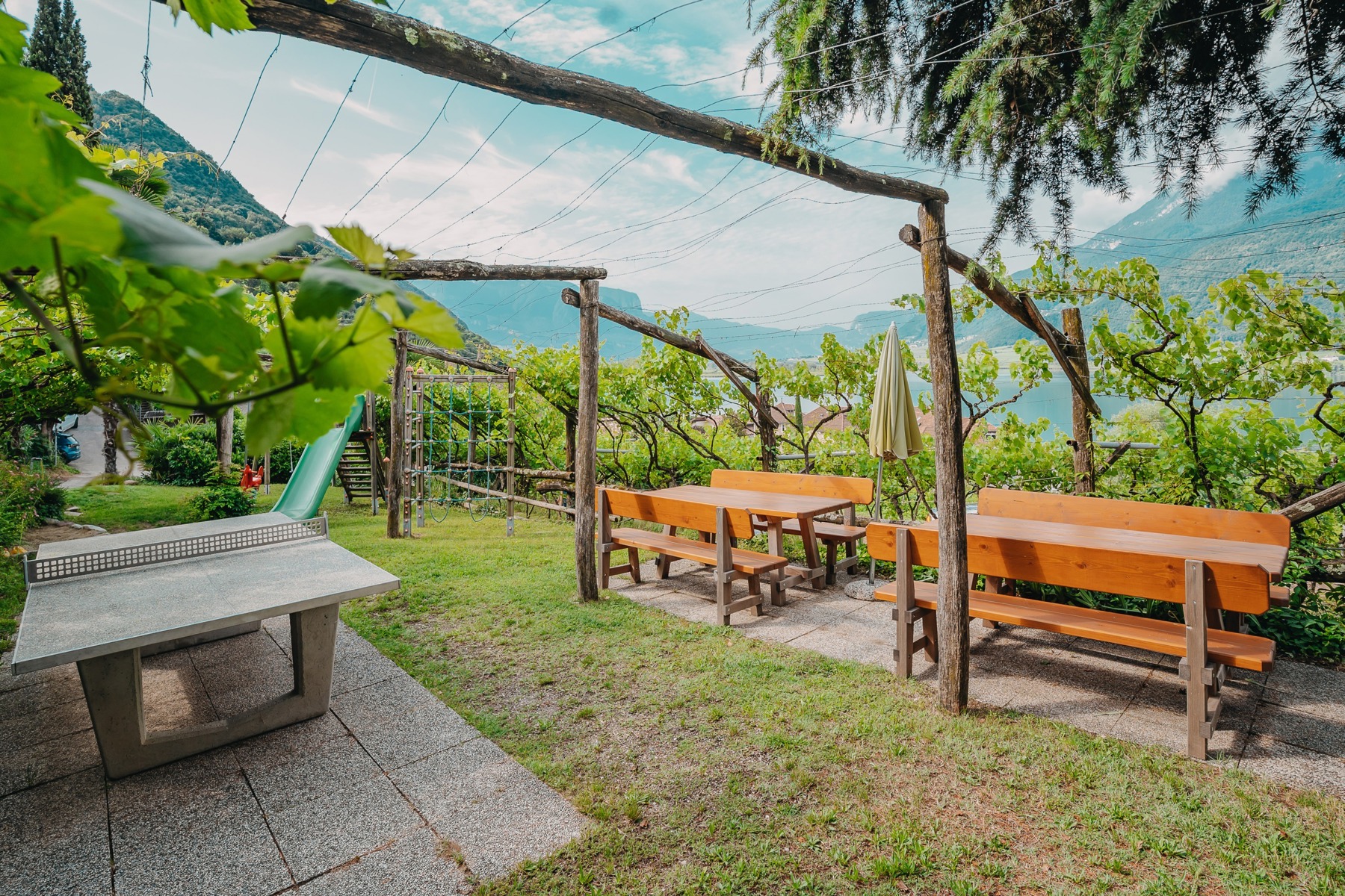 Genießen Sie den herrlichen Seeblick auf den Kalterer See, die umliegenden Weinberge und die sanften Hügel des Überetsch. Die ruhige Lage unseres Hauses sorgt für entspannte Urlaubstage – nur wenige Schritte vom See entfernt.
